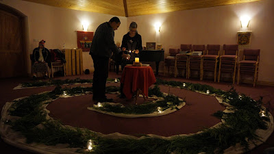 Here are some photographs of the Advent Spiral which happened in the crypt in Camphill Milton Keynes on 29th November. In the middle of the Crypt, there was a large candle and all the residents and co-workers who attended had their own small candle. Somebody lit the big candle at the centre of the spiral and people could light their smaller candle from this to put onto the spiral. Advent Sunday is the fourth Sunday before Christmas, marking the beginning of the Advent season, which ends on Christmas Day.